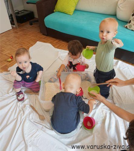 Plstelin razdelite med otroke in jim poleg ponudite zrna koruze in drobne delce. Otroke nato prepustite ustvarjalni igri.