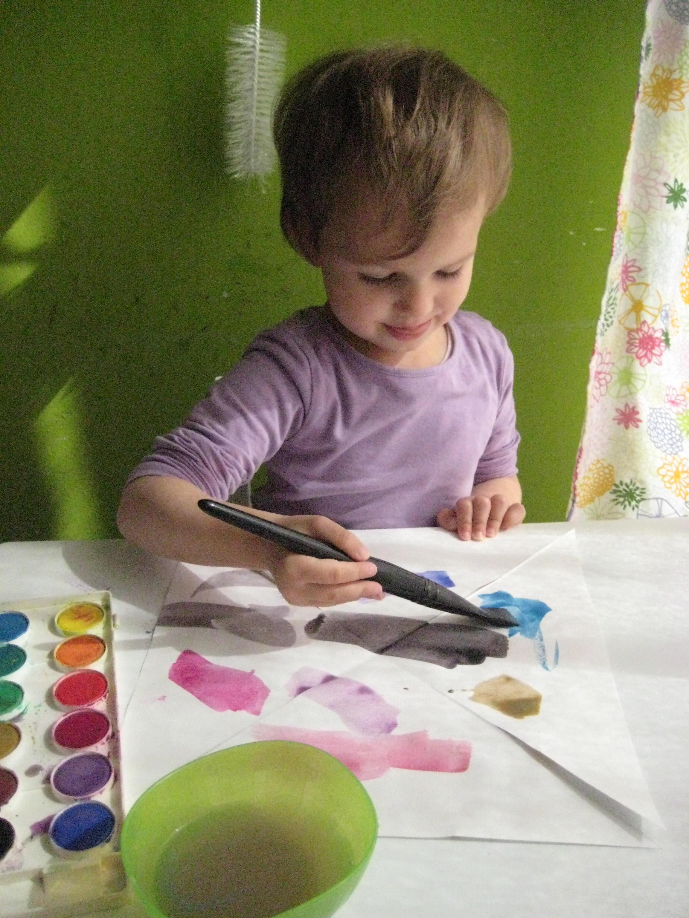 Zadnja dva dni smo posvetili izdelavi vetrnice. Otroci so z vodenimi barvami poslikali  risalne liste, vetrnice pa sem sestavila jaz. Na prvi sliki so pripomočki, ki jih potrebujete za izdelavo. Vsekakor zabavna dejavnost za poletne vetrovne dni 🙂